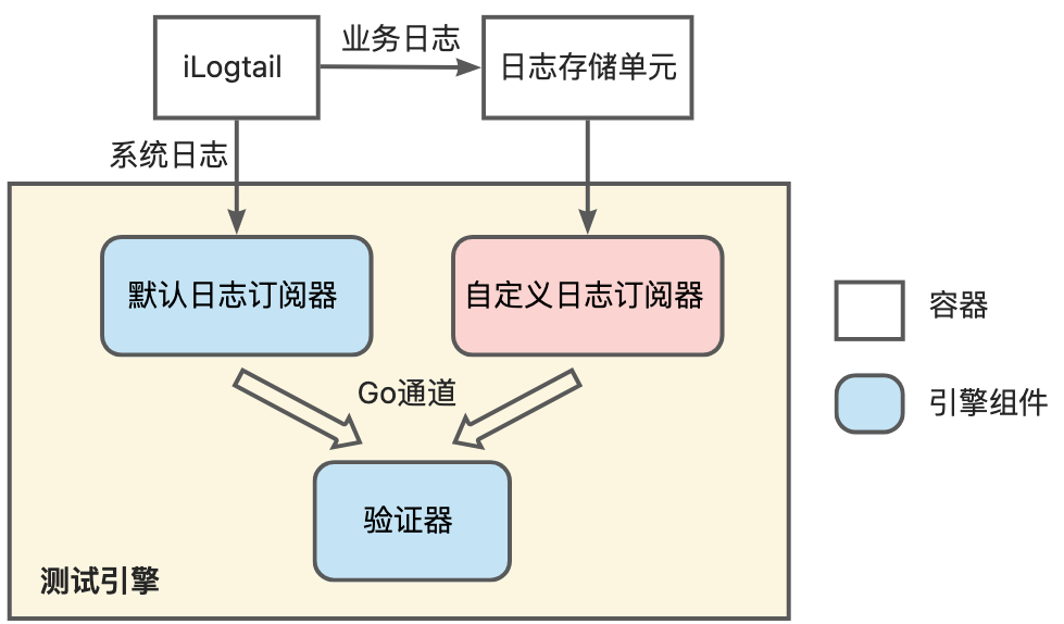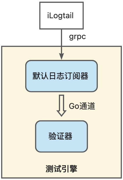 在该场景下，iLogtail默认使用grpc协议将从输入接收到的数据直接发送至日志订阅器，然后订阅器再将数据发送至验证器进行验证，整体测试架构如下图所示：