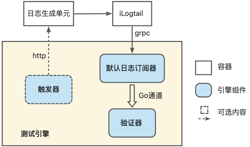 如果您所需的日志是需要对日志生成单元进行触发后才能得到（如nginx的运行日志），E2E测试引擎为您提供了触发器组件，该组件会定时向目的地之发送http请求，您可以在引擎配置文件中配置该组件的相关内容。